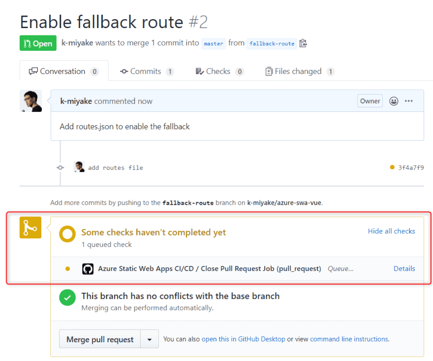 All you have to do for the rest is just to merge a pull request and wait for it to be deployed to the "production" environment. When the pull request is closed, the staging environment will be automatically deleted.